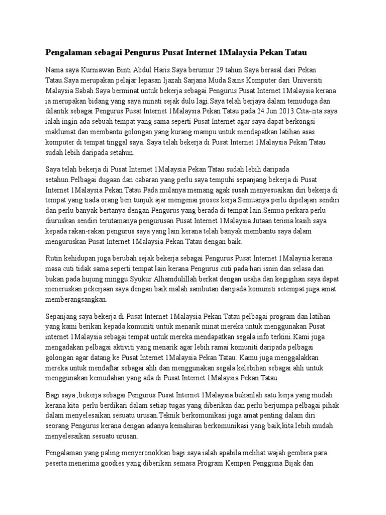 Pengalaman Sebagai Pengurus Pusat Internet 1malaysia Pekan