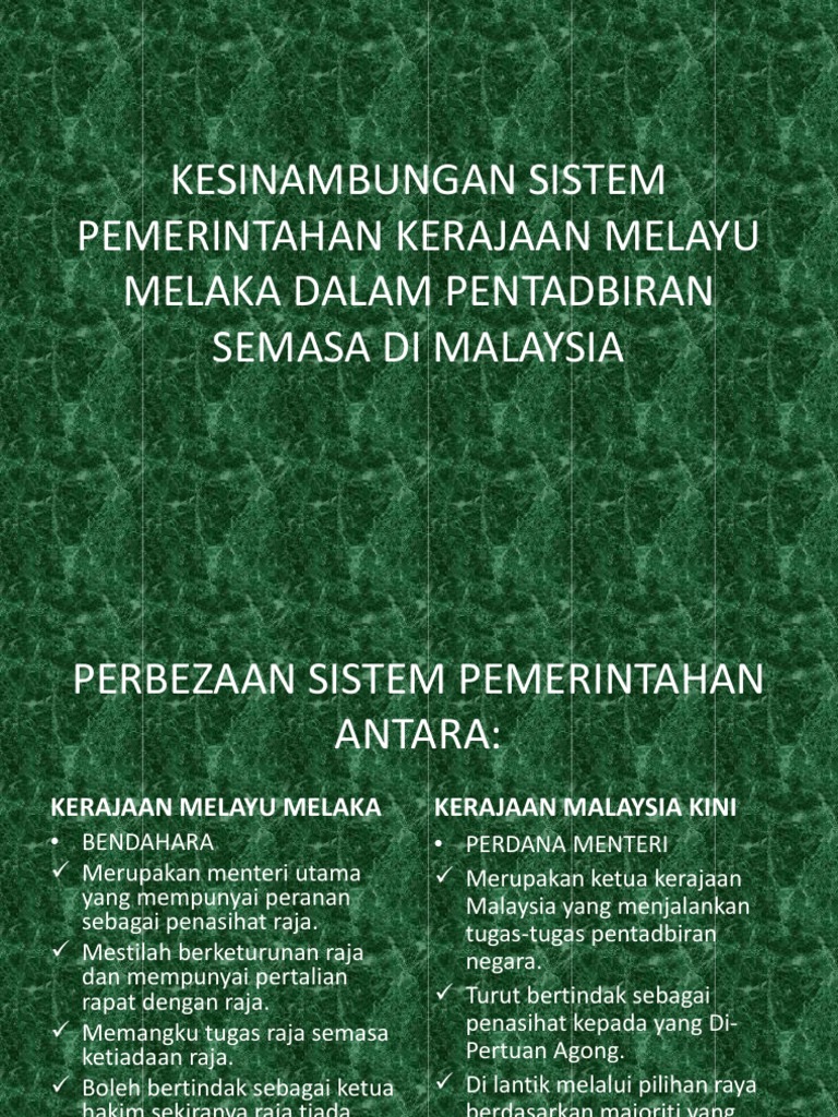Kesinambungan Sistem Pemerintahan Kerajaan Melayu Melaka Dalam