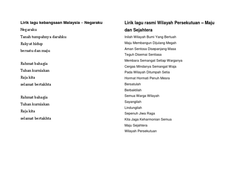 Lirik Lagu Kebangsaan Malaysia PDF